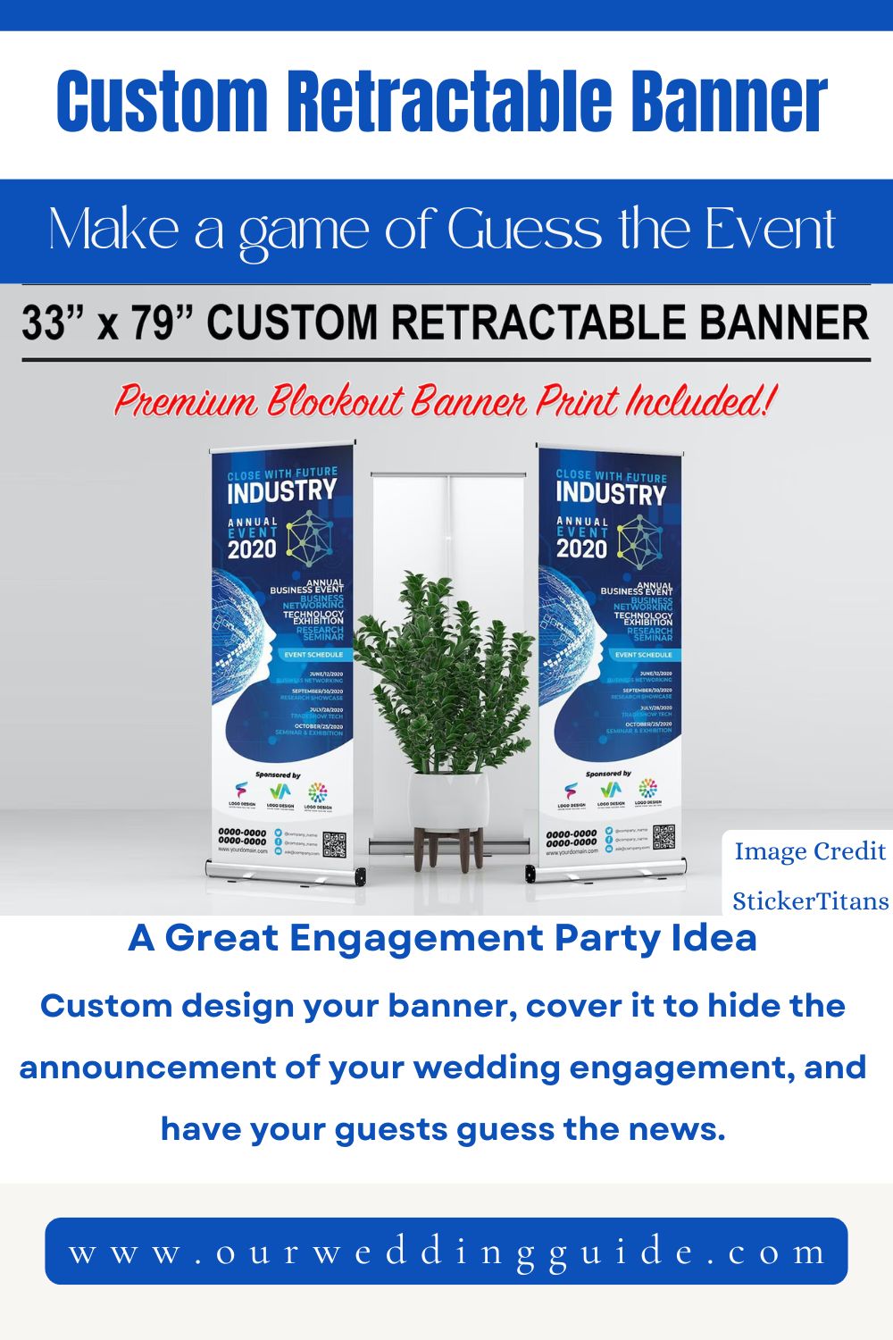 You will need a custom retractable banner featuring the image and wording that matches your engagement announcement.